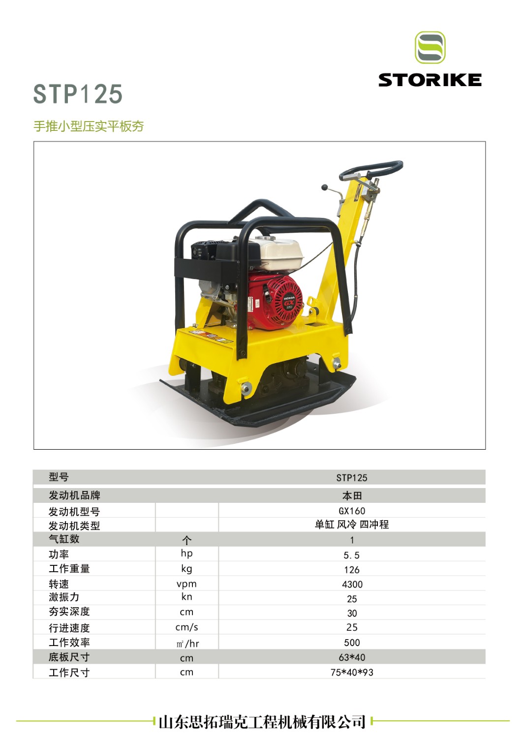 山東思拓瑞克工程機(jī)械有限公司-STP125平板夯